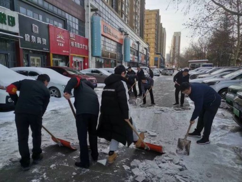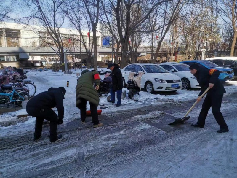 路面積雪經(jīng)過行人及車輛的踩碾及降溫結(jié)冰變得又厚又硬,給清掃工作帶來了極大困難,但集團(tuán)公司的黨員志愿者們不畏艱苦,干勁十足。活動(dòng)中,大家分工明確、相互配合,利用鐵鍬、雪鏟等工具,有條不紊地開展積雪清理活動(dòng),重點(diǎn)對停車場主干道、人行通道及自行車存放處進(jìn)行了集中清理,確保了日常路面暢通和群眾出行安全。