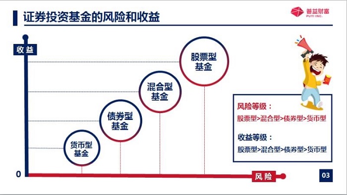 它的特點呢,就是集合投資專業管理利益共享風險,公募基金,他有很多的分類方式,今天呢,主要是想跟大家聊一種分類方式,就是根據這些資金的投資的對象不同,有一些劃分,那么今天主要講四類劃分劃分,就是債券型基金的話呢,是基金資產80%以上投資于債券的叫做債券型基金股票型基金的話呢,就是基金資產80%以上,投資于股票的叫做股票型基金。基于兩者中間呢,就是混合型基金,當然啦,還有貨幣型基金,可能一說貨幣型基金,大家可能覺得很陌生啊,那但是一說余額寶的話,可能大家就不陌生啦,非常熟悉啊,余額寶它就是貨幣型基金。