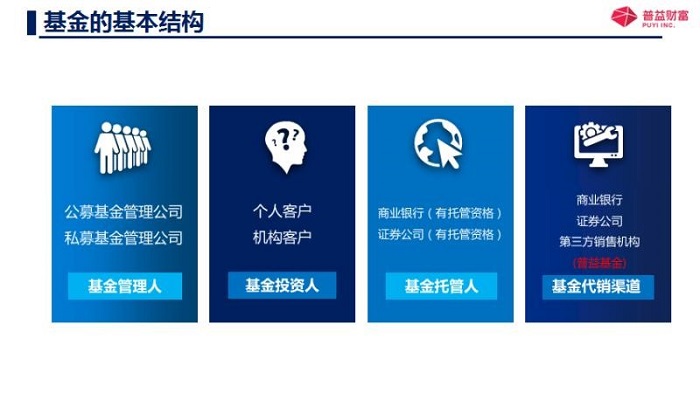 那另外一個呢,基金投資人就是咱們普通老百姓,也是基金投資人呢,還有機構投資者,那另外一個就是基金托管人,就是來保管著咱們資金的安全的就是基金托管人,第一班是有商業銀行或者證券公司,他們還必須得有托管的資質,當然了,還有基金代銷機構,也就是去銷售基金的,比如說一些商業銀行呀,證券公司呀,期貨公司呀,還有一些第三方的獨立的基金代銷機構,像咱們的普益基金就是基金代銷機構。