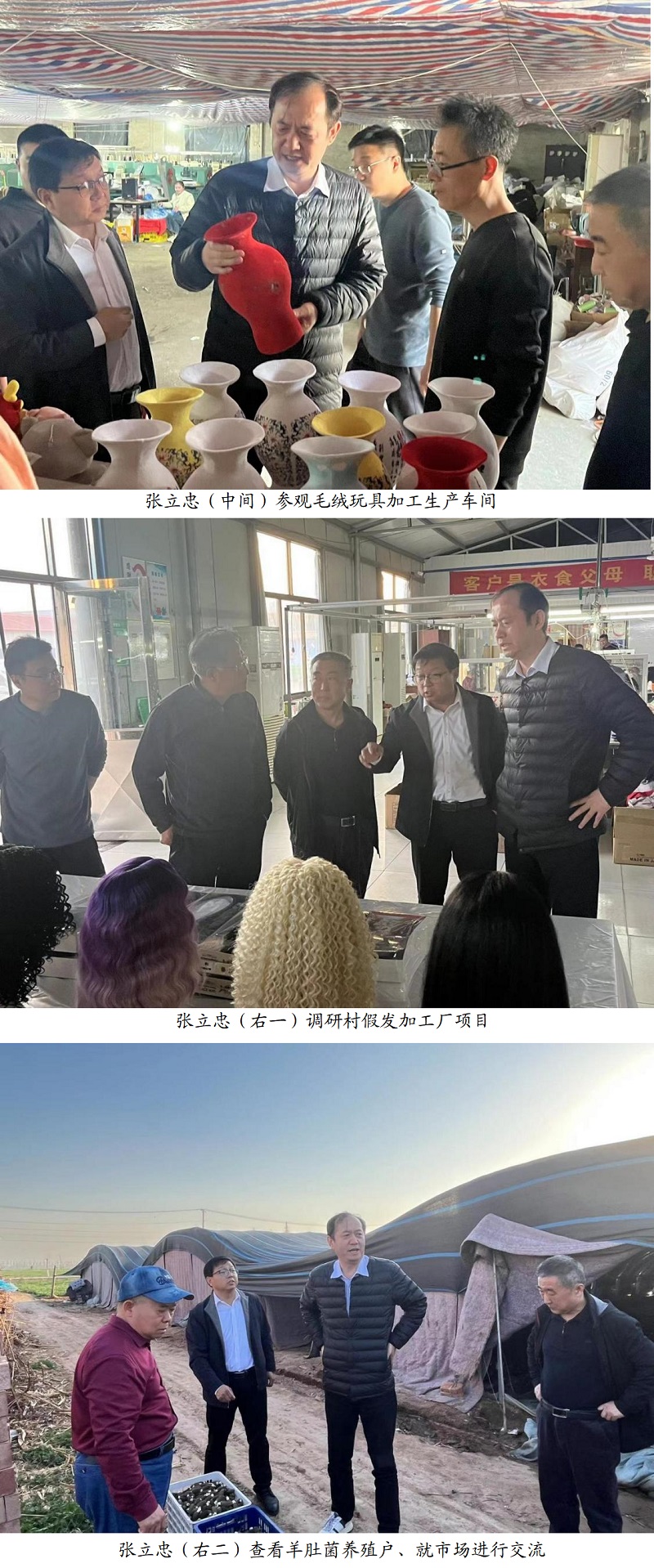 調研工作由曲周縣大河道鄉黨委書記王貴民陪同,參觀了毛絨玩具、假發加工車間和羊肚菌種植基地。會議中介紹了賈莊村當前發展狀況、存在問題以及未來發展規劃。下沉工作隊隊長齊連洪匯報了工作隊近期走訪調研及項目謀劃的工作進展和下一步工作打算。
