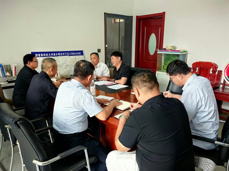 國富公司駐賈莊村工作隊隊長齊連洪匯報了下沉工作開展以來的主要工作情況和下一步的打算。大河道鄉黨委書記王貴民介紹了賈莊村的經濟發展、鄉村建設規劃和村容村貌整治等情況,并對國富下沉工作隊的工作表示高度贊賞。三個工作隊進行了交流學習。
